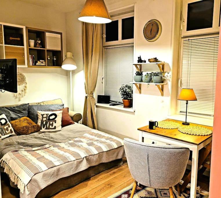 Apartament z 1 sypialnią. This apartment includes 1 bedroom, a kitchen and 1 bathroom with a shower and a hairdryer. In the kitchen, guests will find a stovetop, a refrigerator, kitchenware and an oven. The apartment offers a washing machine, a coffee machine, a dining area, a flat-screen TV with streaming services, as well as ancourtyard view. The unit has 1 bed. Apartament - 2 osobowy. Powierzchnia pokoju ok.: 20 mkw.