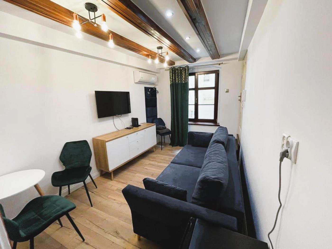 Studio z rozkładaną sofą. The fully equipped kitchenette features a stovetop, a refrigerator and an electric kettle. This air-conditioned studio includes a flat-screen TV with satellite channels and a private bathroom. The unit offers 1 bed. Studio - 2 osobowy. Powierzchnia pokoju ok.: 18 mkw.